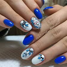 Natural nail designs aren't boring at all, today they arrive in a vast range to select. To recreate this red white and blue chevron look, paint your nails red as a base. Besides, you will find it very interesting and fun to make diy. Blue is a great color for your summer nails. Need some nail design inspiration for your short nails? Blue and white rose nailart. Black and white studded nail art design. Which white nail designs caught your attention? Let me know in the comments section below! Lace nail design lace nail art lace nails simple wedding nails wedding nails design blue wedding nails gorgeous nails pretty nails cute nail designs. Cool royal blue nail art design ideas for trendy girls. Nothing is more beautiful than a combination of black and white with a spark of gold glitter and studs. Blue, white, and black nails.